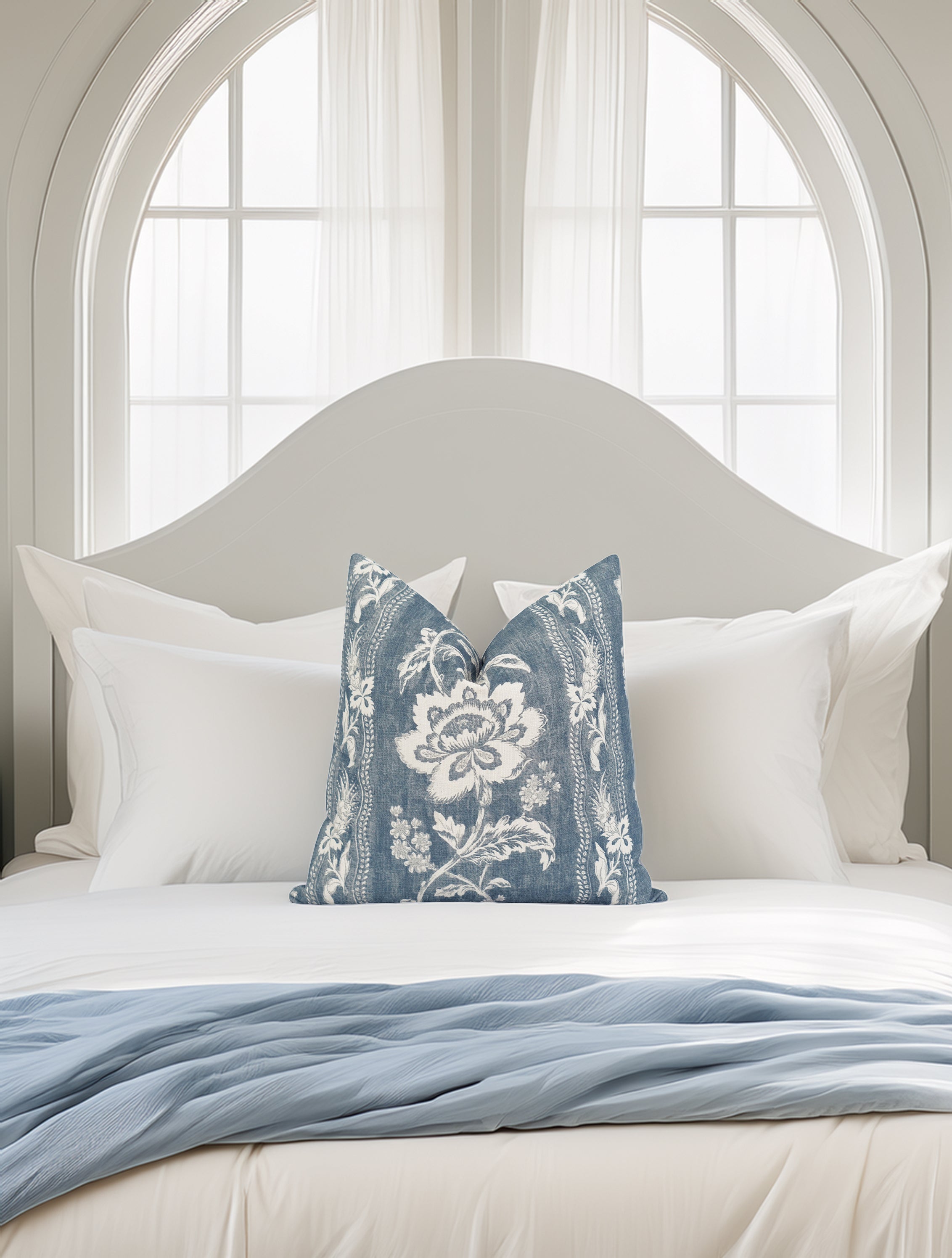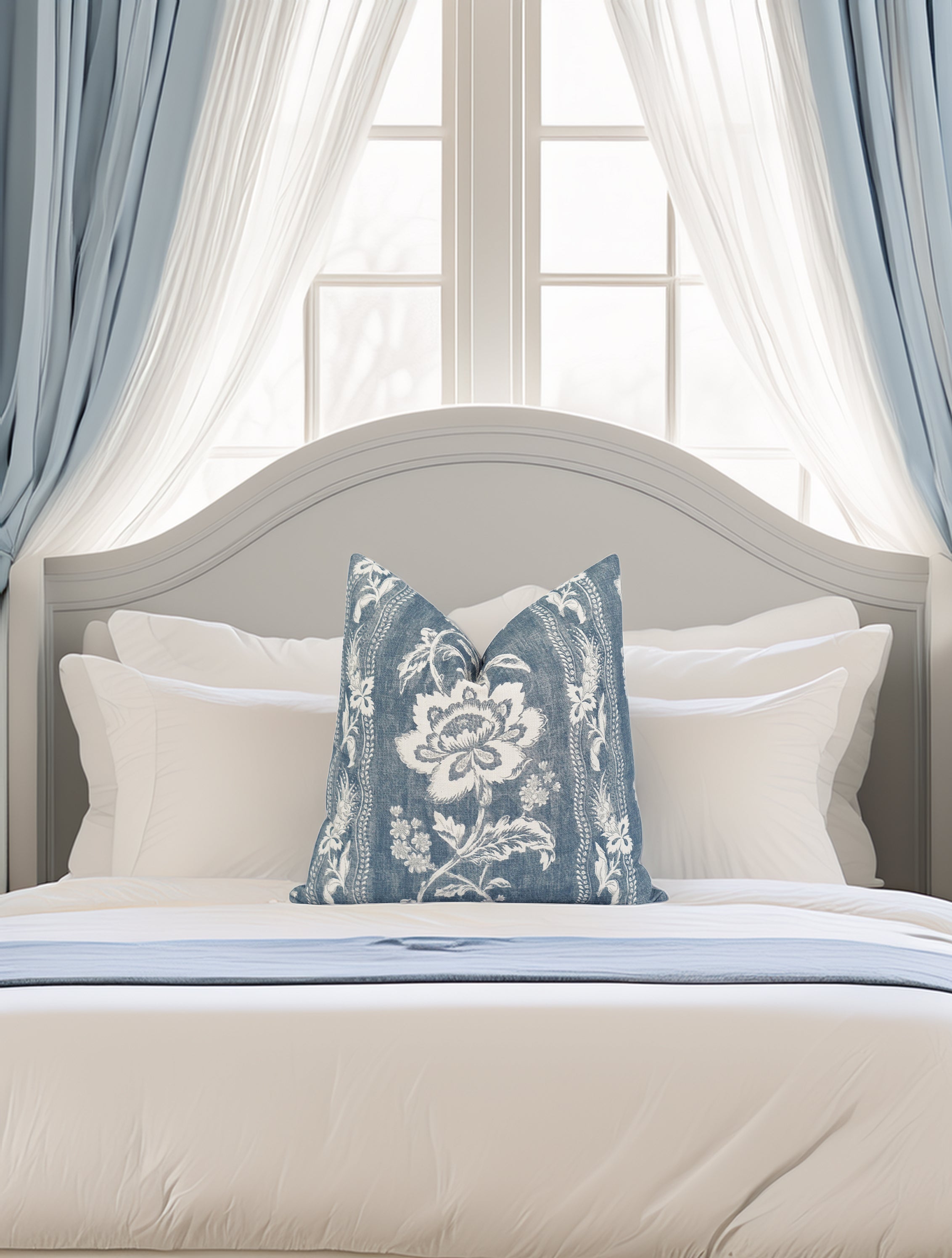 Bring timeless elegance and relaxed sophistication to your space with this beautifully patterned floral pillow. Featuring a classic botanical motif in denim blue and ivory, this pillow adds gentle contrast, texture, and refined charm to sofas, beds, and cozy seating areas.
