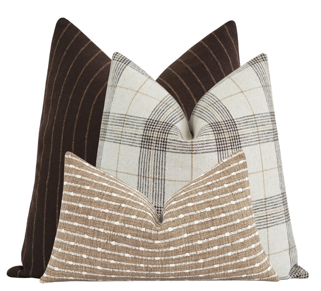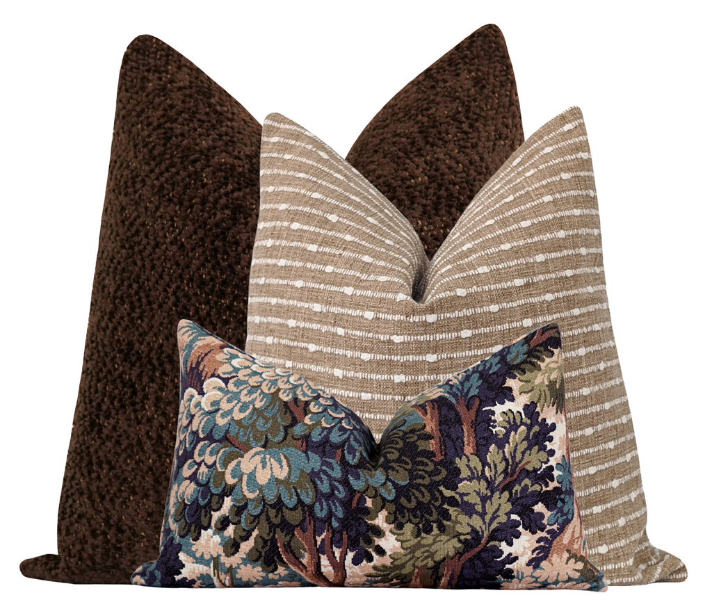 Driftwood Dotted Chenille Brown Leaf Trim Pillow