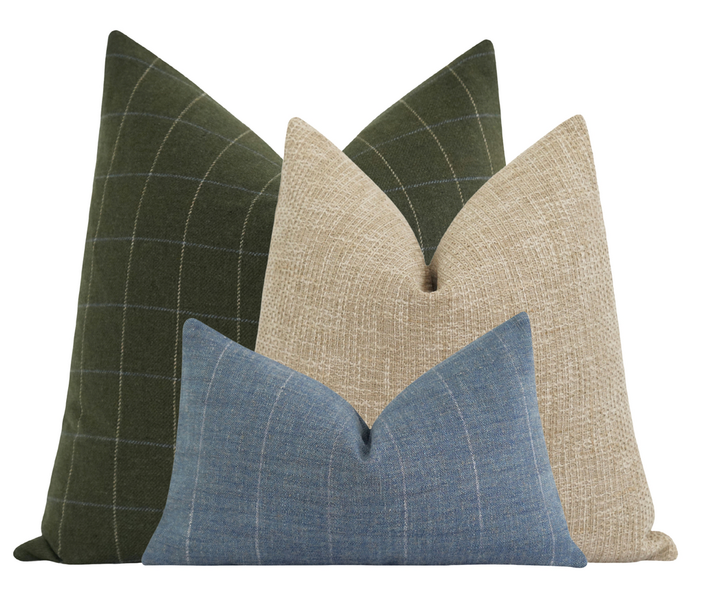 Dove Chenille with Spa Blue Trellis Trim Pillow