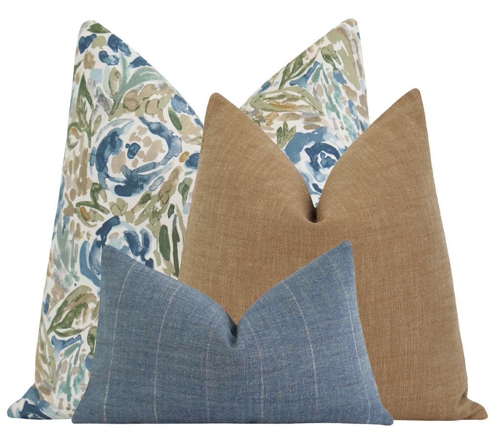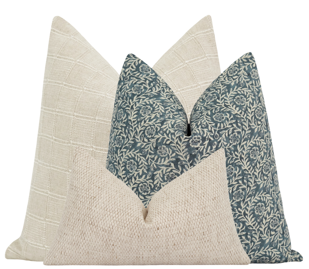Alton Porcelain Blue Floral Trim Lumbar Pillow