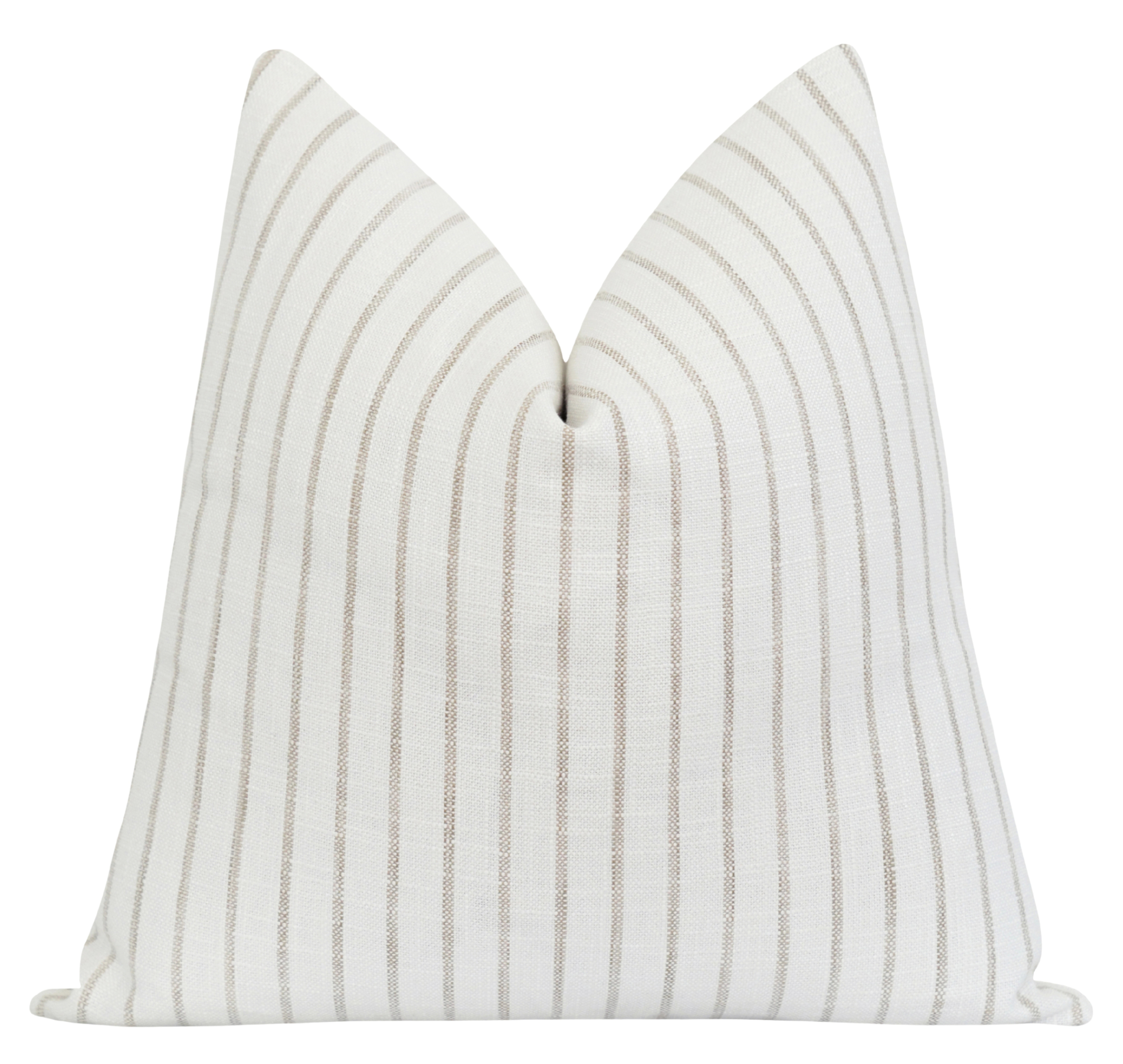 Elevate your living space with the Mesa Dune Stripe Pillow, a luxurious woven accent piece that seamlessly blends comfort with refined aesthetics. Featuring a delicate stripe pattern in sandy beige and off white tones, this pillow brings warmth and sophistication to any room. The intricate woven construction creates visual depth while maintaining a tactile, inviting quality that complements both contemporary and traditional interiors. Designed with versatility in mind, the dual-sided design allows you to showcase different aesthetics depending on your mood or seasonal décor updates. The concealed zipper closure ensures a polished, seamless appearance that enhances the pillow's elegant silhouette. Whether draped across your sofa, layered on your bed, or placed on an accent chair, this pillow serves as a timeless statement piece that elevates your home's overall ambiance with understated luxury.